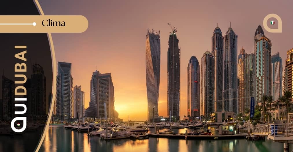 Il clima di Dubai presenta variazioni stagionali distintive, influenzate dalla sua posizione vicino al Tropico del Cancro. Durante l’inverno, la città ha una temperatura diurna media di circa 25 °C (77 °F), mentre le temperature notturne vicino alla costa variano tra 12 °C (54 °F) e 15 °C (59 °F). Nelle zone desertiche, le temperature notturne possono scendere fino a 5 °C (41 °F), con notti generalmente fresche durante tutto l’anno. L’umidità nelle aree costiere varia tra il 50% e il 60%.